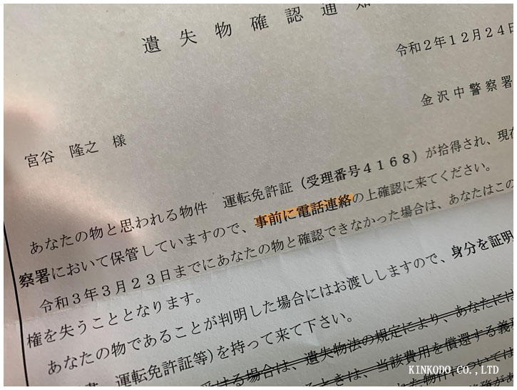 あろうことか免許証を落としておりました。普通なら気が付いて直ぐに警察に落としてないか確認をするところでしたが、実はこの手紙が来るまで気が付いておりませんでした。