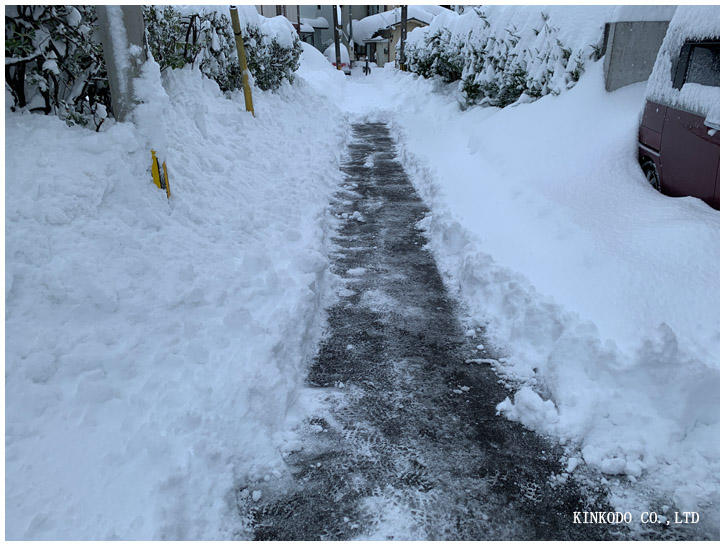 隣の人も出てきて一斉に始まりましたが、隣の人に聞くと5時頃までは積もってなかったとのこと。