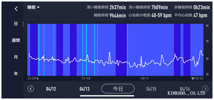 こんな感じです。年齢が年齢なので、熟睡している時間は少ないと言えば少ないのですが、とにかく長く寝れました。