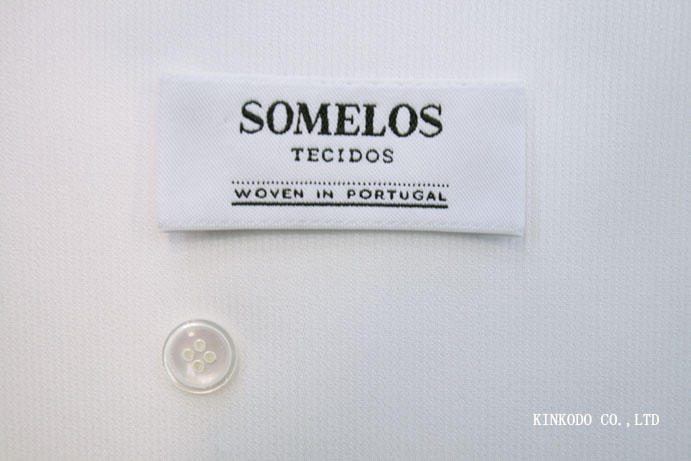 ピケ調の細いドビーストライプ白 SOMELOS ソメロス社製生地 ポルトガル 綿100%