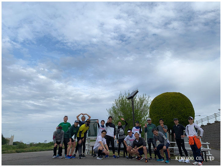 半分行ったところで記念撮影をしたわけですが、ここに行くまでどんどんビルドアップしていき4分15で走ってても追いつかない。昨日の疲れというか日々の疲れが出てこれ以上上げられない。