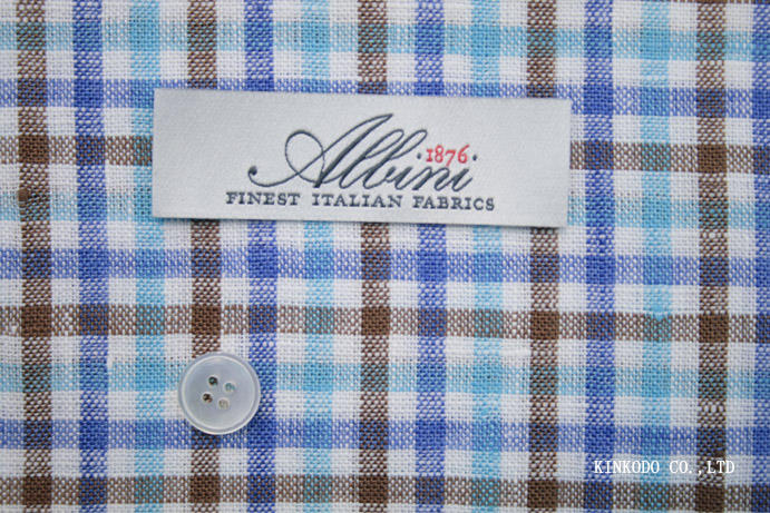 ブルーとブラウンのミックスチェックリネン生地 イタリア アルビニ社製 麻100%
