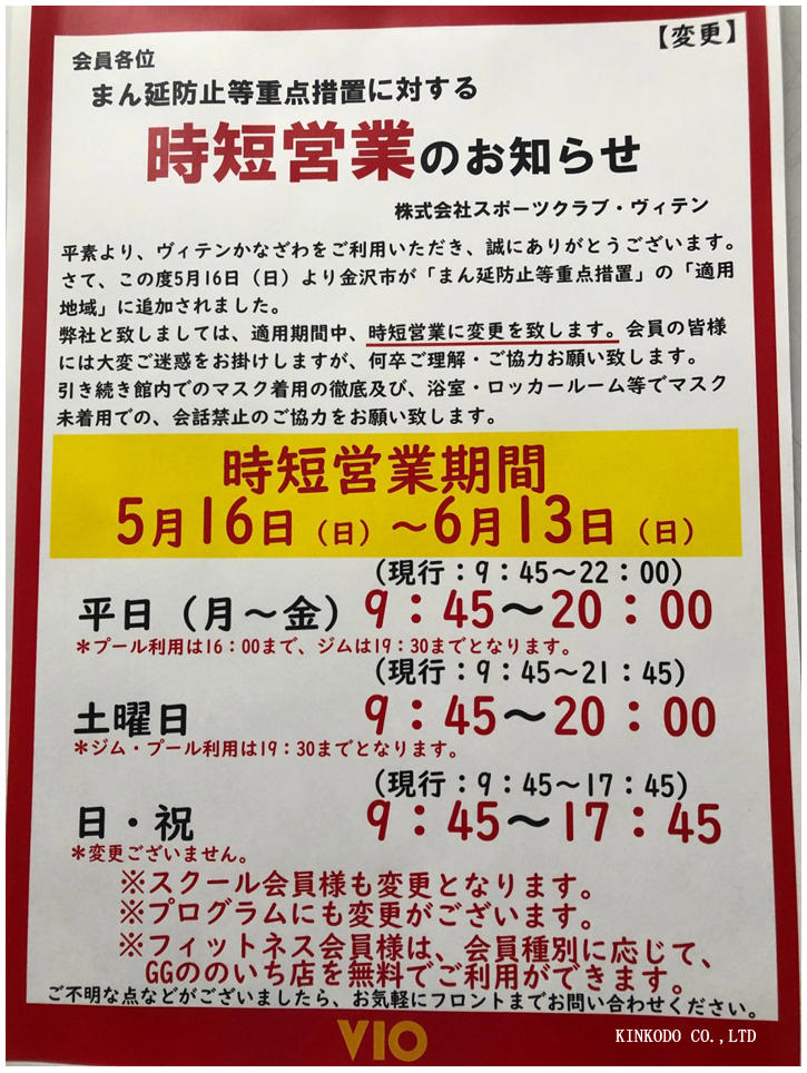 先日まではジムに来る人も少なくなっているので、今の所このままで営業するつもりです。と言ってたのですが、先程LINEでお知らせがきました。