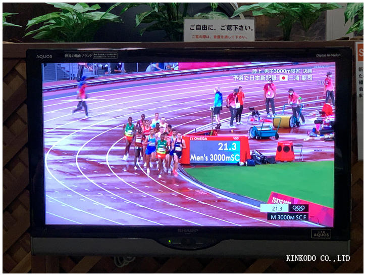 そしてジムのテレビでジムの皆さんと3000メートル障害。優勝タイムが8分9秒90。日本代表の三浦選手は8分16秒90で7位でした。障害がなくとも1キロ3分切るペースで走れないのに水濠等乗り越えて8分の前半のタイムとは・・・凄すぎます。