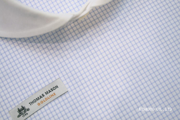 ホームページからのご注文もゴールドラインが人気です。ツイルベースのシンプルブルーチェック  トーマスメイソン社製生地 140番手双糸ゴールドライン 綿100%お仕立て上がり¥27,500-(税込)
