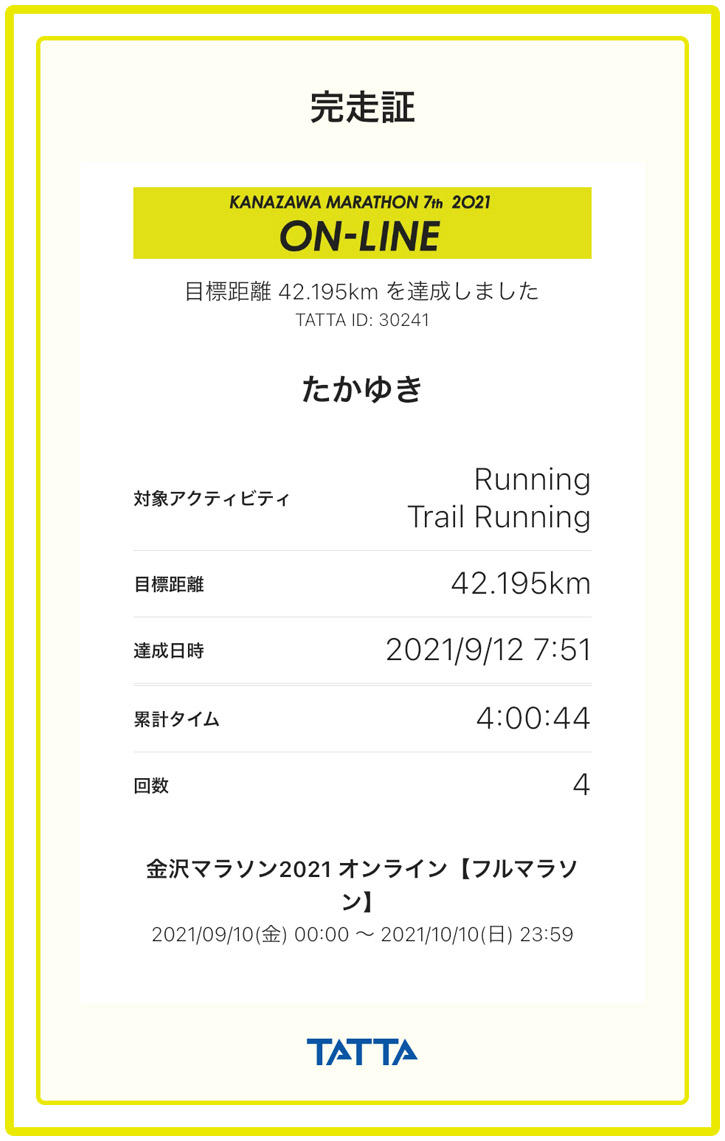 完走証をご覧下さい。残念ながらサブ4(フルマラソンを4時間以内で走ること)はできませんでした。というより意識もしていませんでしたが、どうせならもうちょっとだけ速く走っておけばよかった。