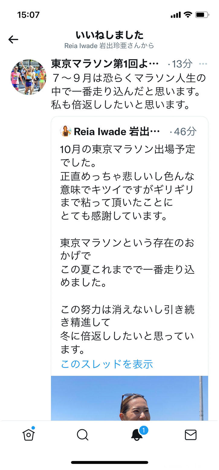 先日本物のアスリートのツイッターの投稿にリツートしたら良いねもらいました。