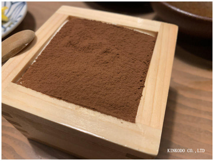最後に出てきた升の中に入ったティラミス。