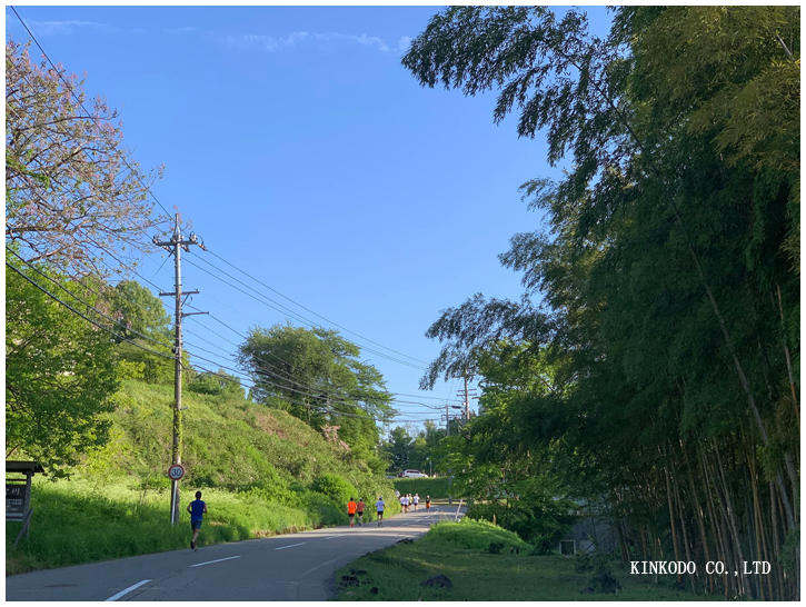 野田山の坂を駆け上がるメンバー。今日はゆっくり後方からいきました。