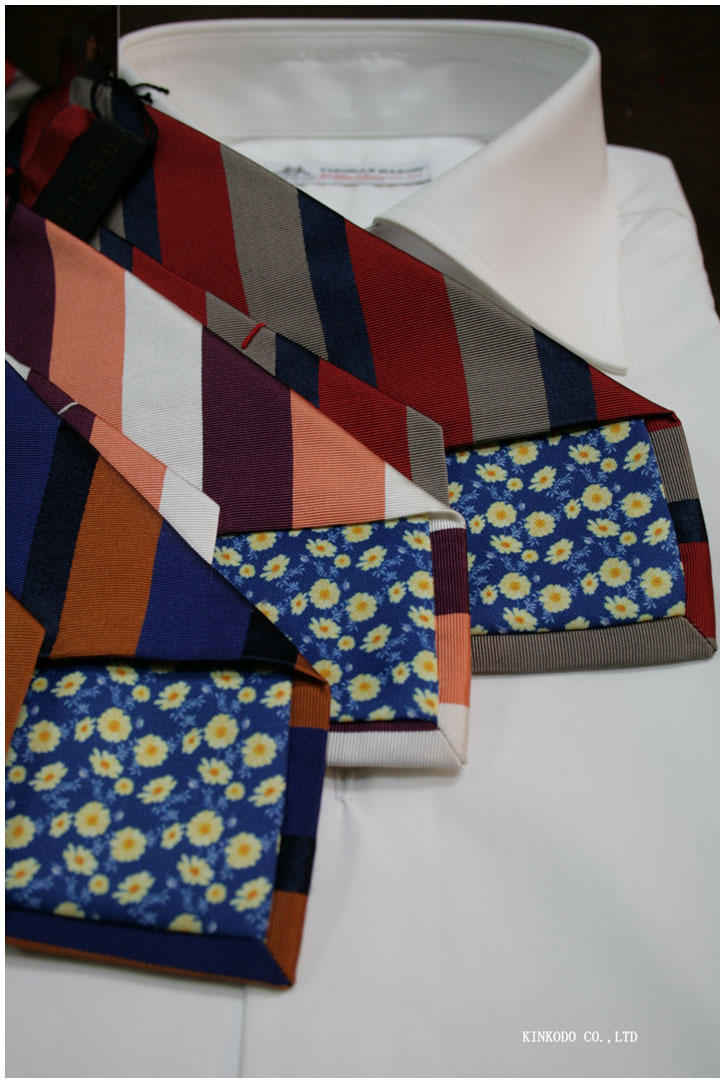 裏地にフラワープリントを使ったレジメンタルタイ 3柄 9,680円(税込)です。画像や上のリンクをクリックして頂ければ更にネクタイの写真がご確認頂けます。