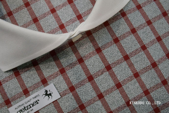NO-10017267 グレーベースに赤のチェック生地 オーストリア・ゲッツナー社製 綿100% お仕立て上がり¥22,000-(税込)です。