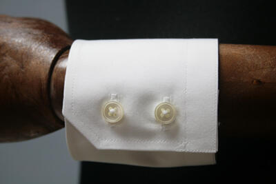 7センチ巾でボタン二個付きのカフス。カフスの先は丸くなってたり、このように角を落としていたりと2種類程あります。