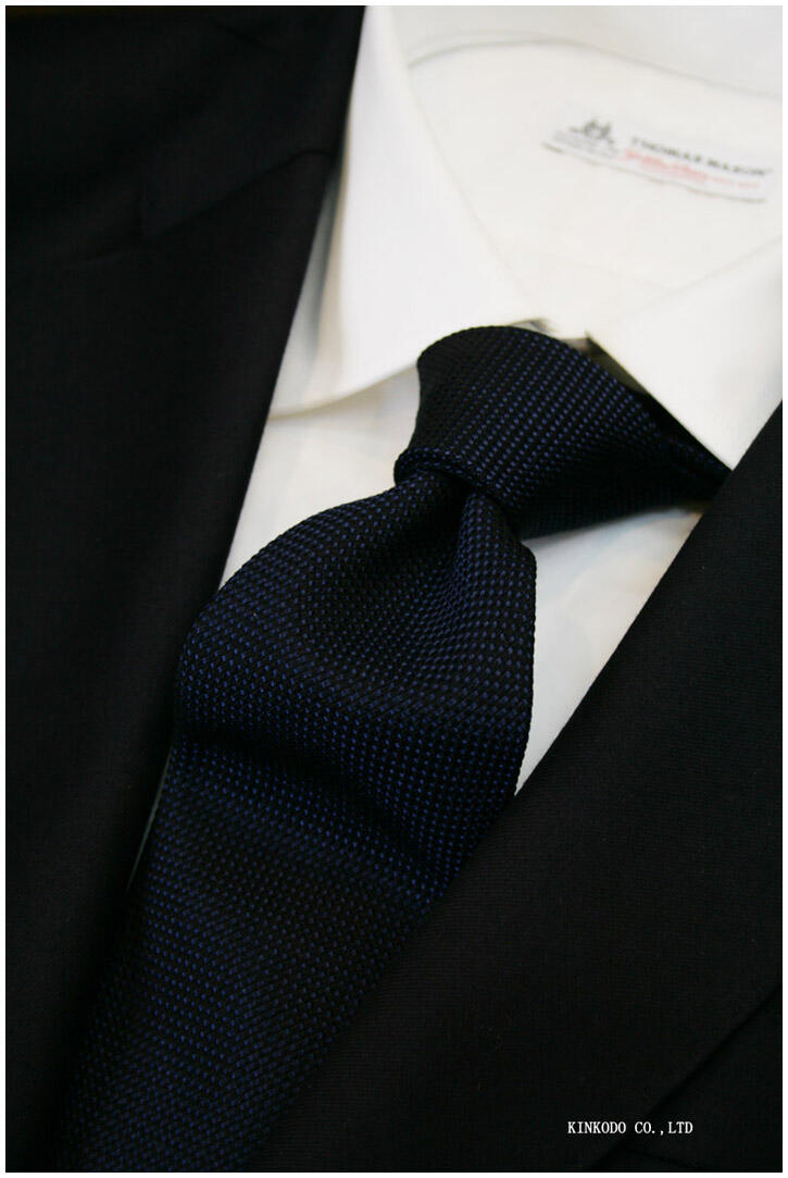 コットンシルクの立体感あるネイビーソリッドタイ イタリア老舗メーカーALBENIアルベニ社製