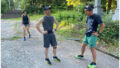 新入荷の生地です。そうです引っ張ってます。エラスティックなどの素材が入ったもので伸びる生地はありますが、こちらはコットン100%のナチュラルストレッチ。それでも結構伸びますので、多少タイト気味に作っても着心地は良いかと。