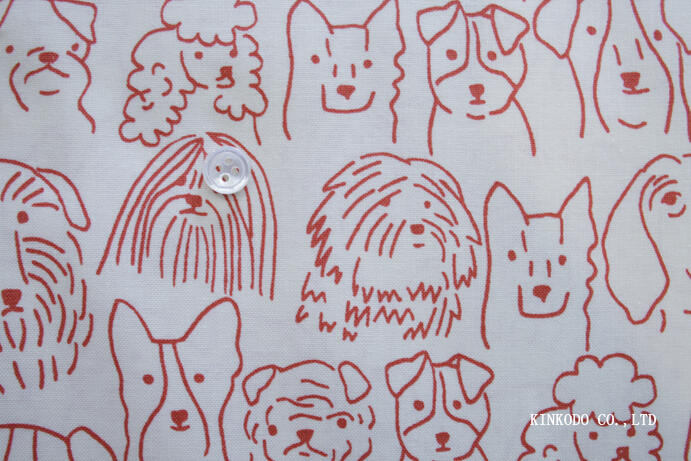 赤のラインで描かれたワンちゃんのプリント生地 Mode Fabric アメリカ 50番単糸 綿100%