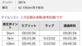 前回は一人でしたが、今回は二人だったので気が紛れて助かった。目標とするペースはほぼ一緒。4分45秒くらいで入って、きつくなったら10秒落とす。10秒落とすと楽になるだろうから?たとえ10秒落として20キロ走ったとしても200秒ってたったの3分20秒。それくらいしか変わらないしね。と言いながらスタート時間を待ちます。