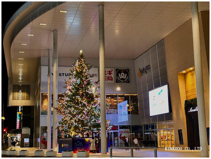 綺麗に美しく輝いていました。商店街のクリスマスツリー。