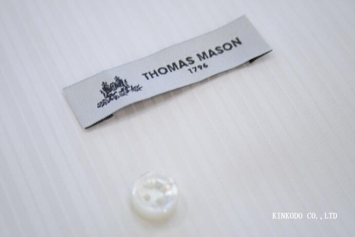 NO-758 ふと巾と細いストライプとが重なった白ドビー 120/2×70/1 トーマスメイソン社製生地 綿100% 今のところまだお仕立て上がり¥25,300-(税込)です。よろしくお願いいたします。