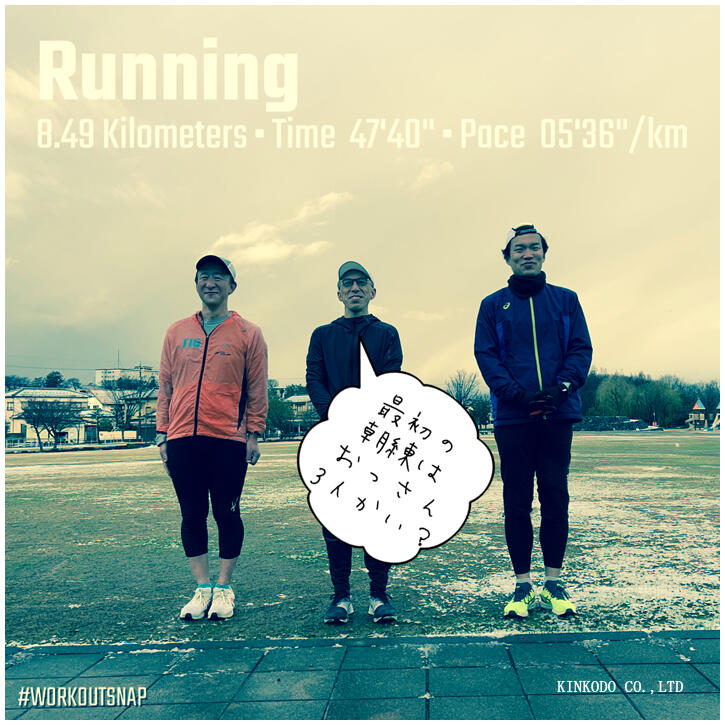 6時半集合予定でしたので、6時半までに2.4キロジョグをして6時半になったのでメンバーを待っても誰も来ない。10分から20分遅れるというメンバーが来てそれぞれにラン。もう一人遅れてきて3人で練習をし、外を走れない状態でもなかったので、他のメンバーはいつもの公園に行ったのかと思ったのですが。