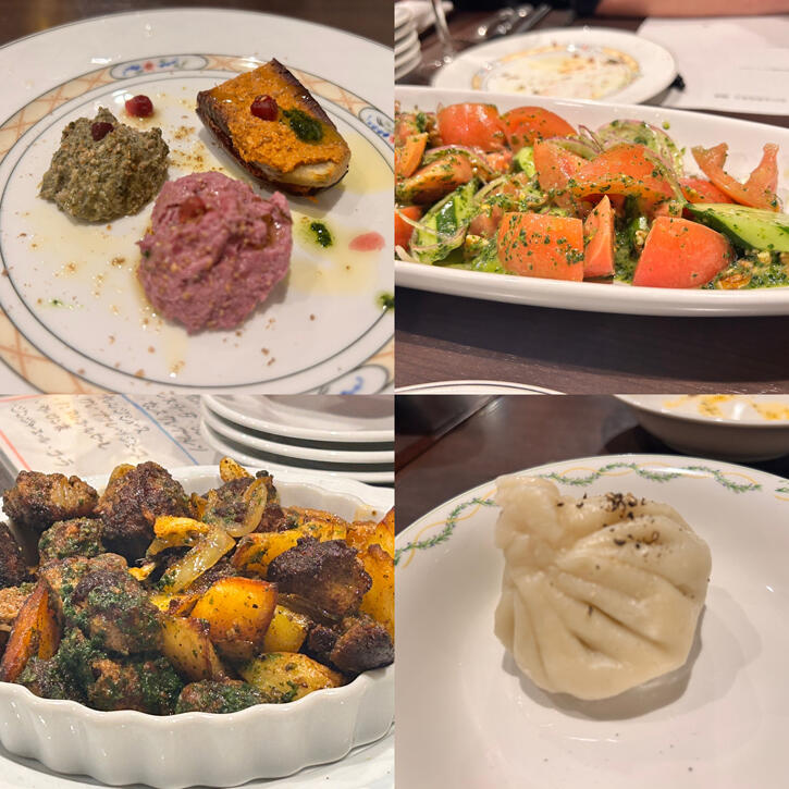 グルジア料理の知識は全くありませんでしたが、グルジアはくるみの産地だということで、くるみが細かく砕かれたものが料理に使われていました。こちらのコースで5,000円。飲み放題は2,000円+です。