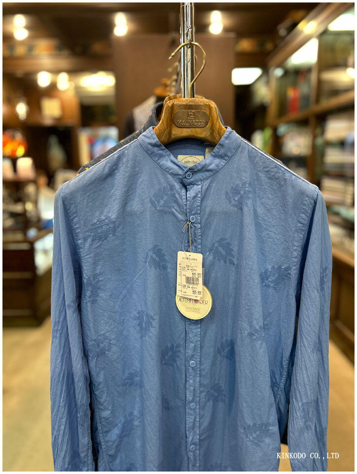 ご来店時にお客様にこの商品をお見せしたところ、どうもイメージと違うようでした。このシャツはALTEM FLOWER のスタンドカラーシャツ。