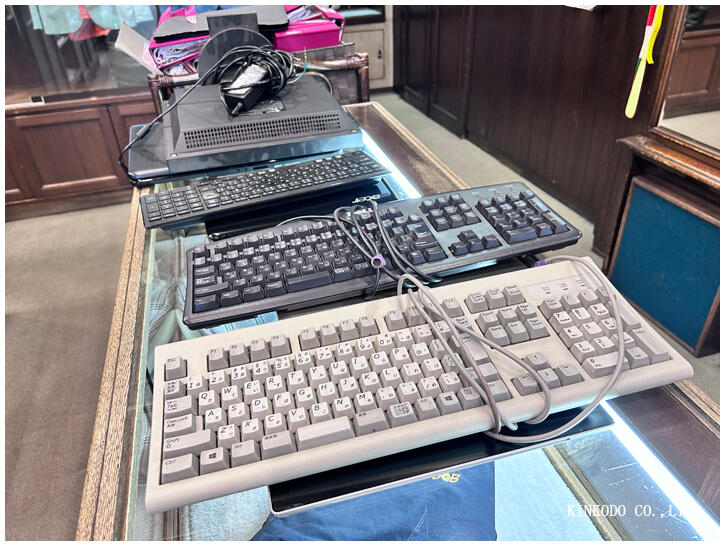 キーボードが並んでいるように見えますが、その下にはノートパソコンが4台。