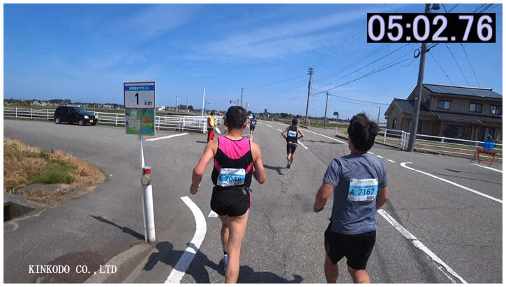 ランナーって道の端を練習で走っていることが多いのか多くのランナーが端に寄って走ります。このコースの場合は恐らくは三角コーンとかも立っていないので、道幅全部がコースだと思うのです。写真にあるようにコースは右側に曲がっていくのですから、そこを直線で結ぶコースが一番短いわけでとなると左端に寄っていると距離が長くなります。