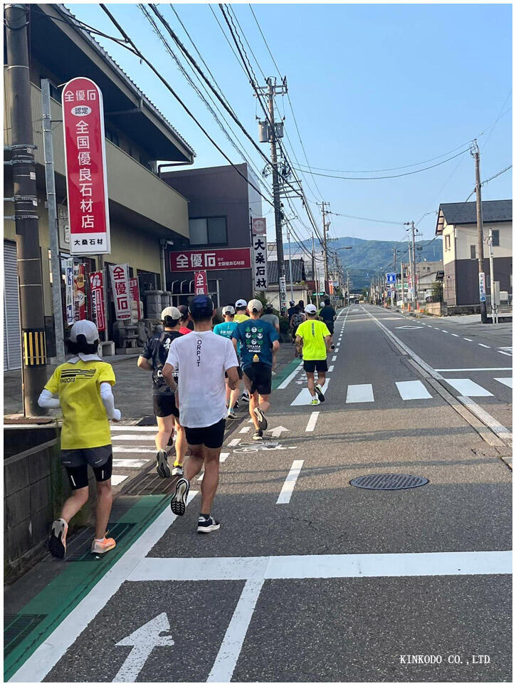 辰巳ダムに到着する直前、前の車が止まりました。そのまま動きません。あ~、歩道が広いのに歩道じゃなく車道の端っこを走ってたから怒られるかな?と思いながら歩道に入り、その車の横を通ると窓ガラスが開き「社長頑張って!」と声をかけて頂きました。金港堂のお客様でした(笑)。しかし早朝にあんな所でどこに行かれたのでしょうか?