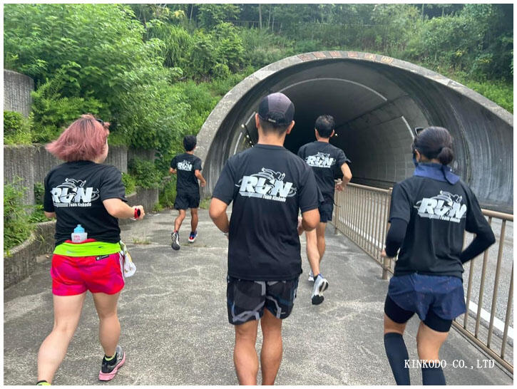 最初はもう少し小さくしたんです。でもパソコン上でのシミュレーションでは何となくバランスが悪くて。決して売名行為なわけでもなく、むしろ10年以上総務部長みたいなもので、宴会の仕切りやこのTシャツの管理までやっているので、そろそろ誰かに代わってもらいたいとさえ思っていたり。色々勘違いされても困るな・・・と思った次第です。そもそもランニングチームの名前にKINKODOっておかしいでしょ。