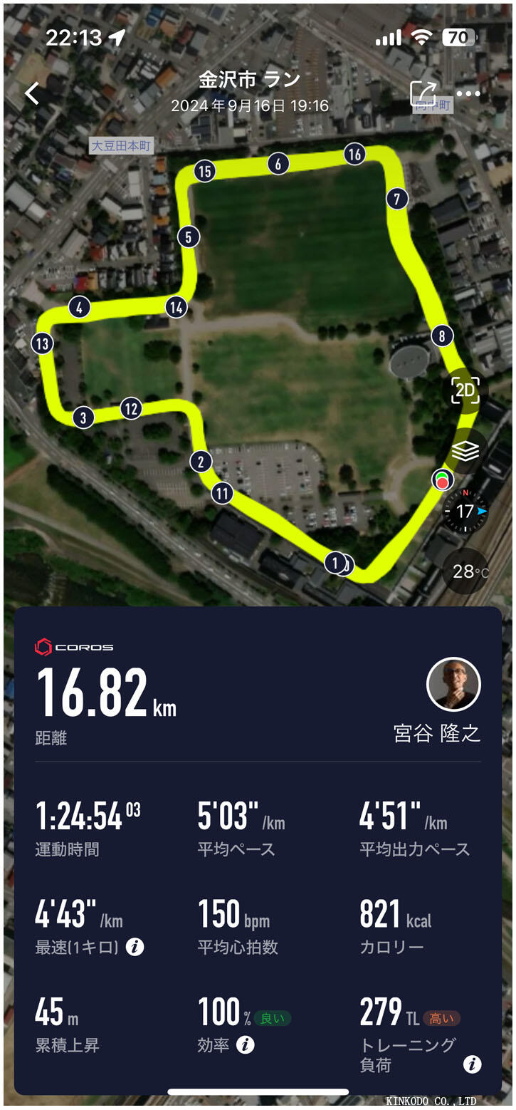 さて、少しだけランニングの話を。昨晩は16キロのジョグを予定していたのですが、市民芸術村に行くとチームメンバーがすでにジョグをしていて、つい一緒に走ることに。ペースがどんどん上がり、最終的には平均ペース5分/キロで16キロを走り切りました。
