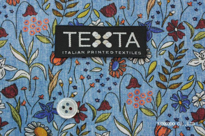 NO-10407903 ブルーベースのフラワープリント生地 イタリア テキスタ社TEXTA製生地 綿100% お仕立て上がり24,200円(税込)です。