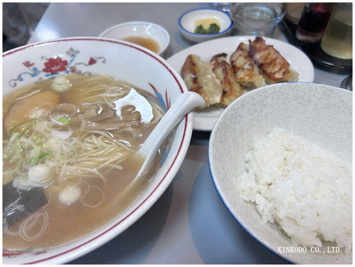 Bセット。ラーメン、半ライス、餃子。当店のオーダーシャツ生地も高くなったけど、お昼ごはんも1000円じゃ無理ですね。