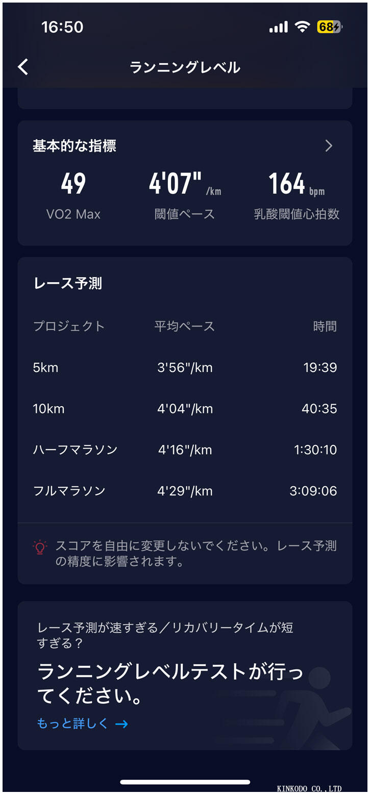 今まではフルの予想が3時間13分台でしたが、目標としていた10分を切る予想。当日は慌てないで4分30秒でしっかりとペースキープさえできればできないタイムで走れるはず。