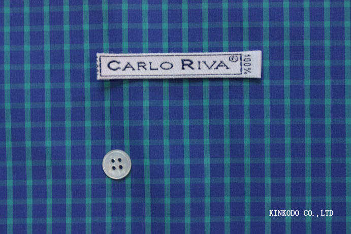 カルロリーバのポプリンのチェック生地です。色の組み合わせが最高です。ブルーにグリーンのチェック柄。出来上がりのシャツは着ているのを忘れるくらい軽く仕上がります。ドレスの生地でのカルロリーバも贅沢ですが、この最高級ブランドでカジュアルなシャツを作ることこそ贅沢だと言っていいと思います。
