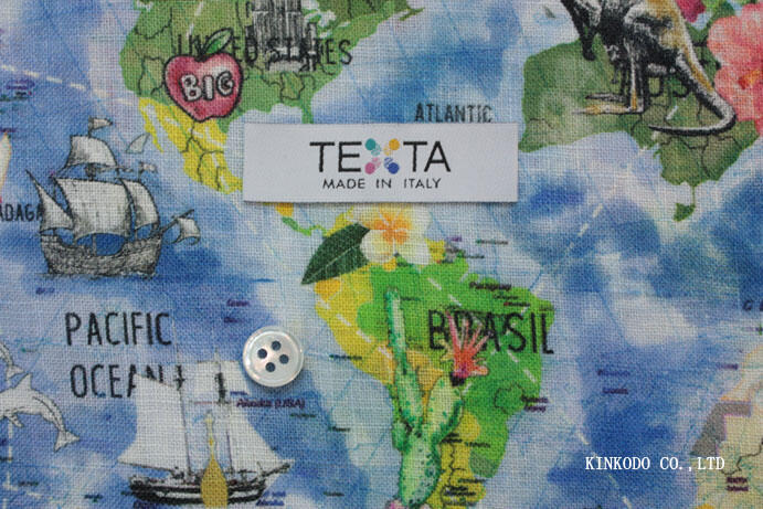 TEXTA社製 イタリアンコットン100% ワールドマッププリント生地