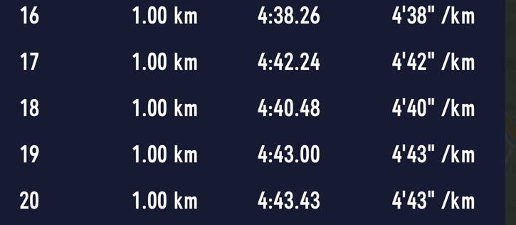レースは30キロからといいますが、25キロを過ぎてからラップが維持できず。ただ頑張るのは30キロ過ぎてからだと思っているのと、完走できるかも?と思って安心したのもあります。