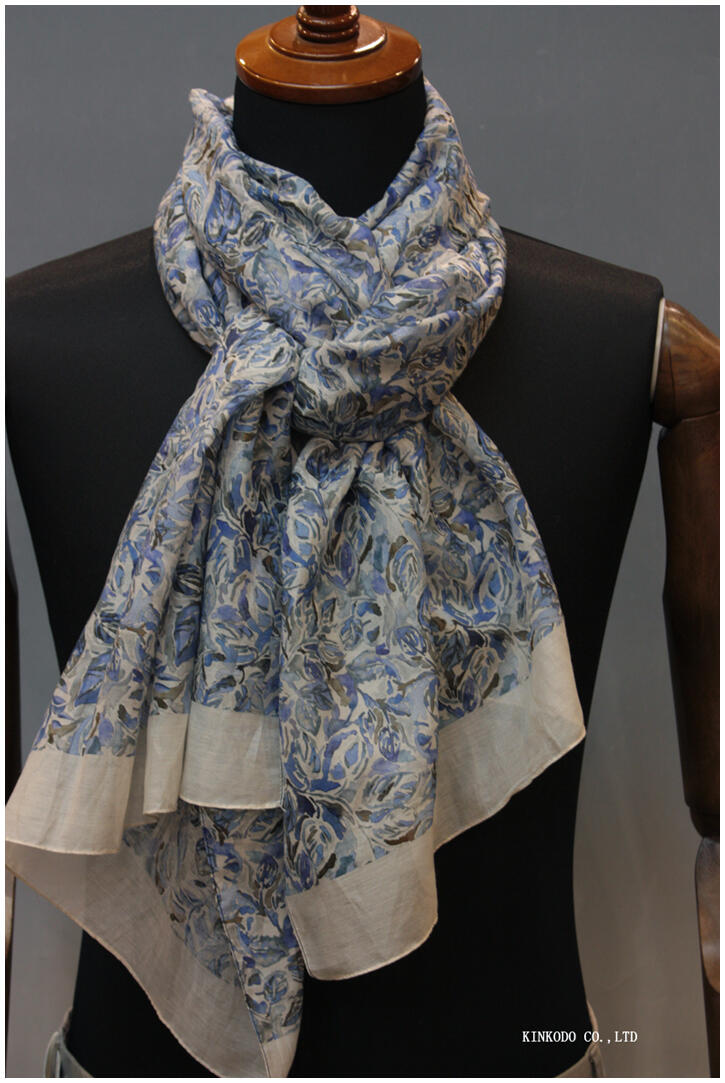MOTI(イタリー) シルクコットンのブルーのフラワープリントのストール