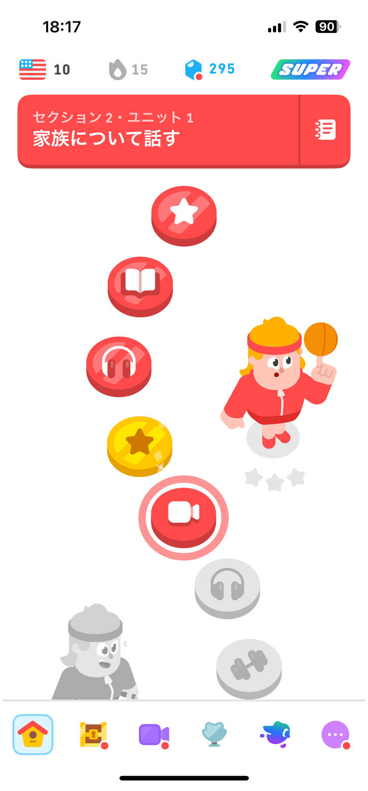 勉強は Duolingo というアプリを使ってます。一日5分くらい。アプリを開かないと怒られます。メールが来たりプッシュで通知がきたり。今日は勉強できる時間があるでしょうか?内容は中学1年生くらいの内容ですが。
