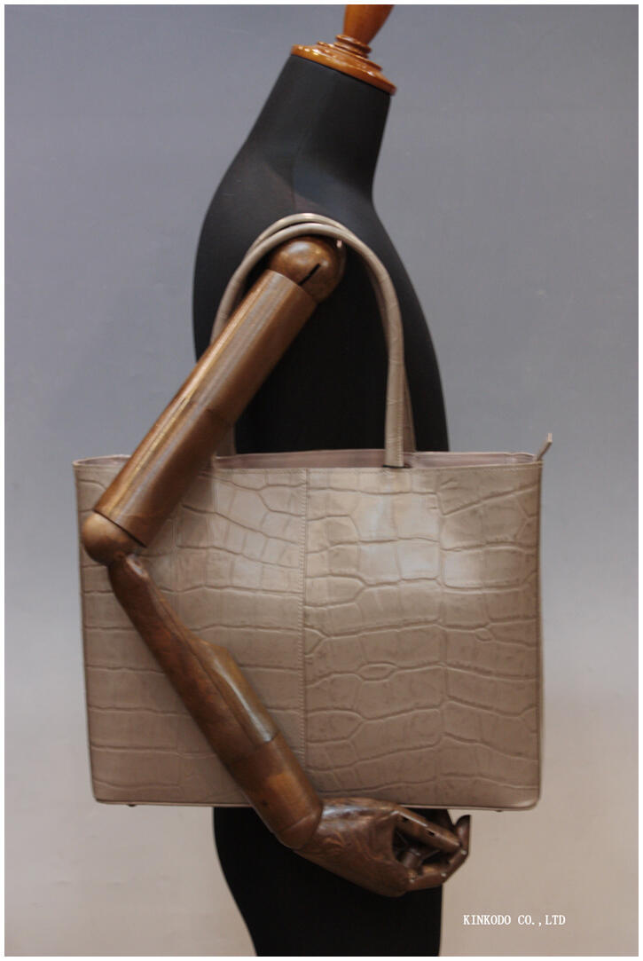 牛革クロコダイル型押しトートバッグ(ライトブラウン)A4ファイルたっぷり収納の大きさ 日本製 お手頃な35,200円(税込)です。