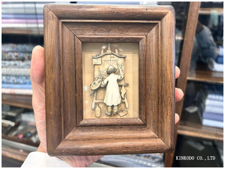 イーゼルに金港堂のモチーフの船を描いているので、私の父親か?もしくは祖父がどこかで買ってきたものだと思いますが。流石にこれは売れないといいました。