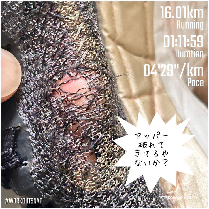 625キロ走ったアルファフライ2のアッパーが裂けてきた。ちょっと早くない?とは思うのですが、金沢から大坂まで電車で行くと262キロらしいです。1往復と約100キロこのシューズで走ったと思ったら寿命かも知れませんね。まだ履くけど。