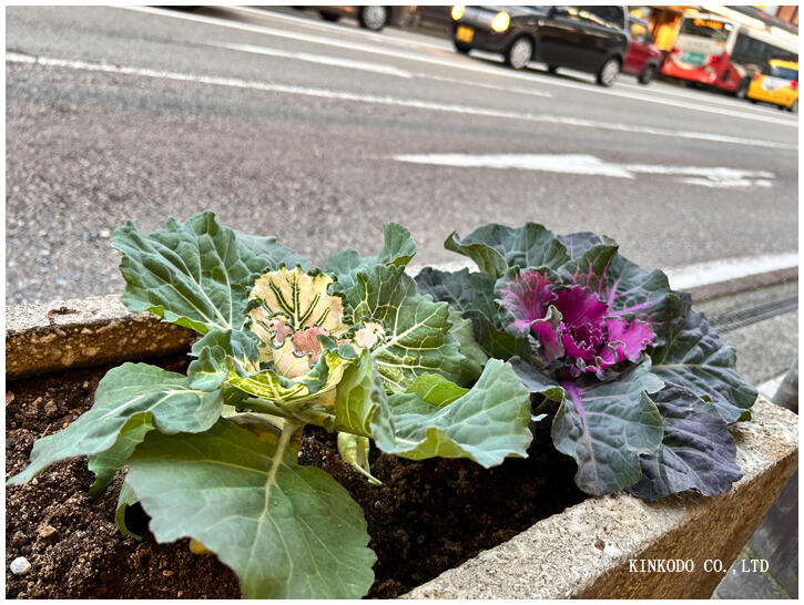 さて、今朝は商店街の花壇の植え替え。冬に向けて葉牡丹でした。
