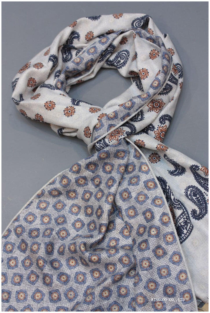 ちなみにこのストール。matti totti(マッティ・トッティ)/ITALY のネイビーのペイズリー×テラコッタの小花、もう片面はブルー基調の小紋ストール 4パターンあってそれぞれ2本ずつ入荷したのですが、4パターン全て1本ずつご購入を頂き、まだ全てのパターンが残っています。「matti totti(マッティ・トッティ)
