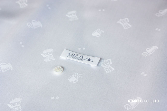 コーヒーモチーフ柄の白のジャガード生地 エジプト綿 GIZA 100番手双糸 綿100%