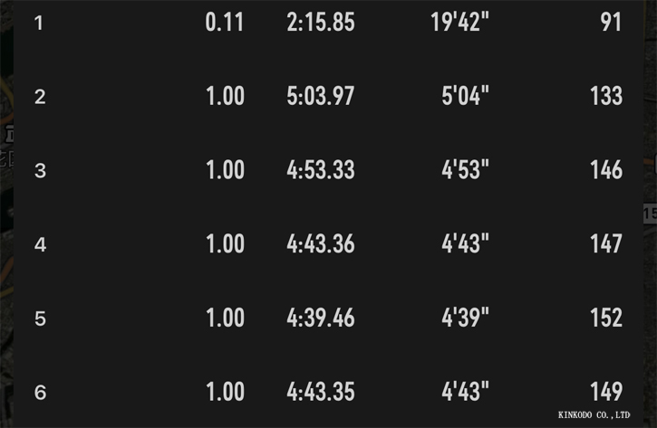 ラップの1はネットとグロスの差でラップ6が丁度5キロのラップになります。
