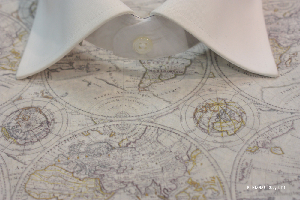 NO-LB30601A ONE WORLD オフホワイトベースのアンティーク調ワールドマップ柄 リバティプリント 綿100%