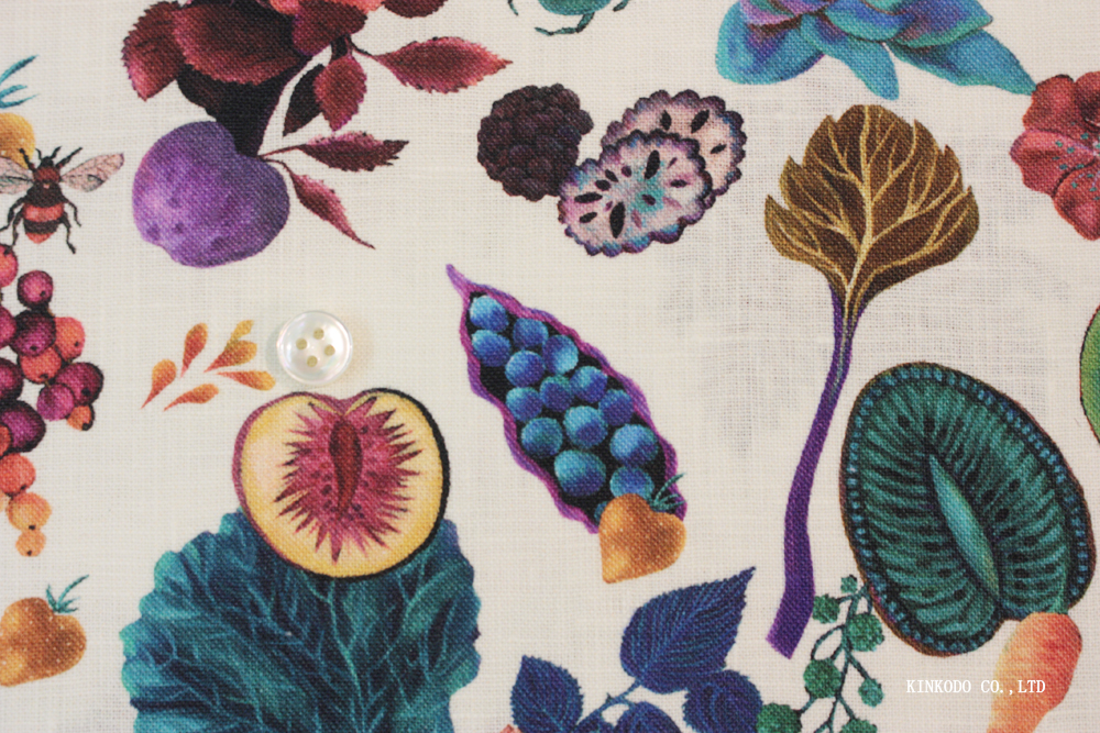 NO-LB7525A FLORAL EARTH 果実と花のボタニカルアートプリント LIBERTY PRINT リバティプリント リネン100%
