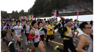何か変な格好。パンツの中にシャツを入れようとおもったらゼッケンを下に付け過ぎて中途半端にしか入らないし、スタート時点で紐を締め直そうと思ったら固結びになってそれ以上どうしようもない状態にも。おまけに写真の通りに襷のかけかたを間違えてチップがやたら当たるし。スタートダッシュで飛び出して高校生軍団に抜かれます。別のチームから今回は参加しているメンバーが先行するのが見えましたが。これは予想通り。彼を追っかけてはいけません。その後左を見るとチームのメンバーが私を抜いていきます。走力からいくと抜かれるはずはない?私が遅いのか?と思いながらスピードを上げます。かなりきついですしこのまま3.7キロもつのか?と心配になります。また反対側から他のメンバーに抜かれます。秋に市民マラソン10キロで10数秒程だったと思いますが差を付けて負けたメンバーです。このままおっかけるとこっちが潰れるな。と思い先にいかせます。どれだけのラップか分かりません。かなりのスピードで走っていると思うのですが。