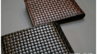 財布の中からお見せしましたが、真っ赤な撥水レザーです。艶を抑えることによってかえって素材感が出ていると思います。