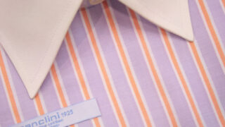 ドットの上にレインボーカラーのストライプを配した、落ち着いたようなそれでいてキラっと光る地味派手ネクタイ。